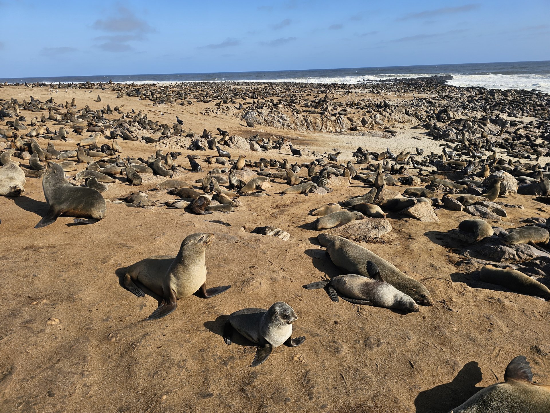 Nors Skeletų krantas yra arti vandenyno, tačiau pakrantėje vyrauja dykumos. Šaltoji Bengelos srovė ir dėl jos susidarančios oro masės regiono krituliais nelepina. „Tačiau šalti vandenys, atplaukiantys nuo Antarktikos, ruoniams sudaro palankias sąlygas įsikurti net tropinėse platumose. Vienintelė čia gyvenanti rūšis – Pietų Afrikos jūros lokys Arctocephallus pusillus. „Cape Cross“ draustinyje jų gyvena dešimtys tūkstančių. Iš tiesų, vienoje vietoje pamatyti tiek ruonių – įspūdinga. Jie gyvena laisvai, nėra uždaryti aptvaruose“, – pasakoja Ž. Preikša ir priduria, kad čia aptverta tik pati lankymo teritorija, abipusiam – žmonių ir ruonių – saugumui.