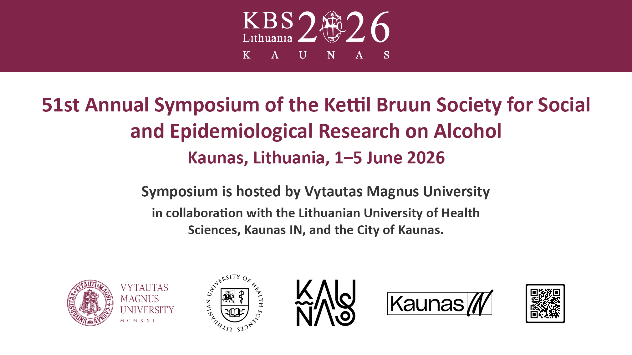 We are thrilled to announce that the Call for Abstracts for the 51st KBS Symposium is now open. The 2026 meeting in Kaunas, Lithuania, taking place from 1 to 5 June, will be a wonderful opportunity for our community to come together, share new insights, and reconnect. We warmly invite all colleagues engaged in alcohol research to take part in the 51st Annual Alcohol Epidemiology Symposium of the Kettil Bruun Society.