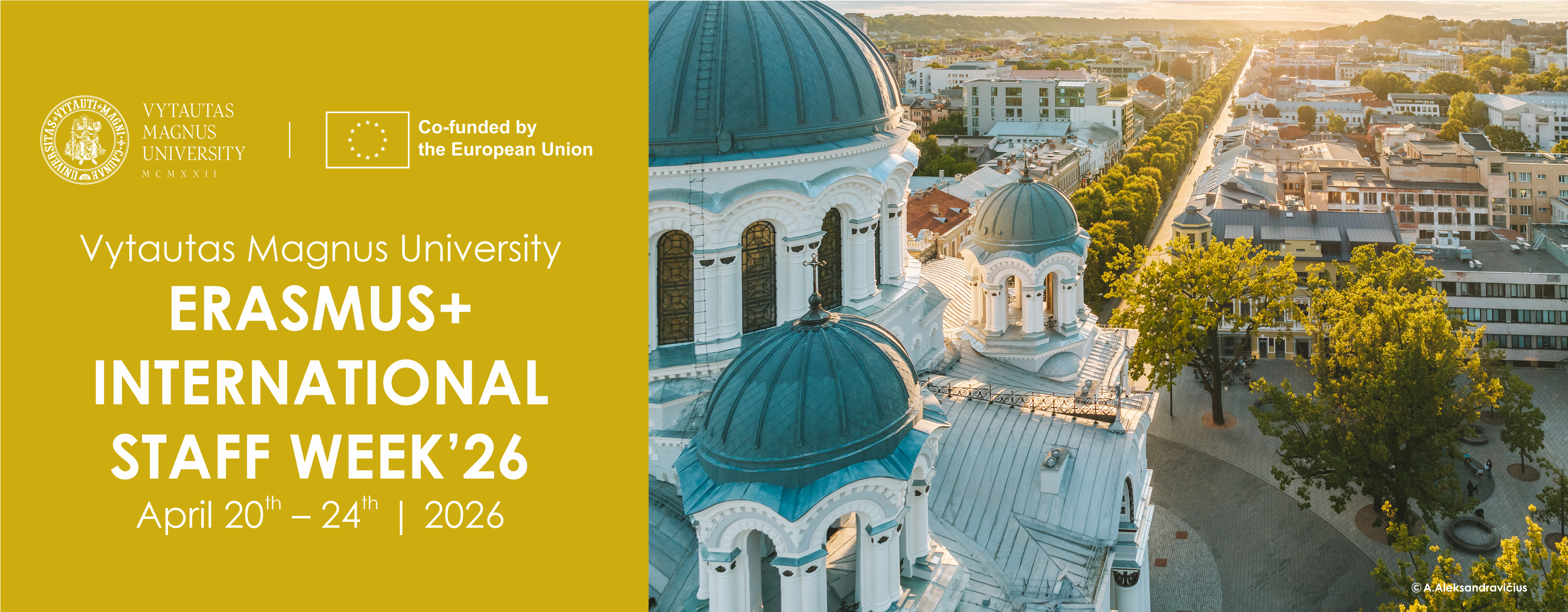 Vytautas Magnus University (VMU) is pleased to invite our distinguished colleagues from partner Universities to carry out Erasmus+ Teaching and Training Mobilities at VMU from the 20th to the 24th of April, 2026 in Kaunas, Lithuania.