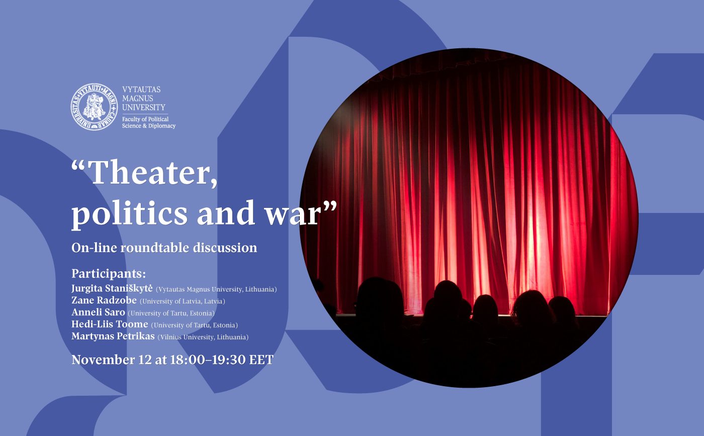 We will examine, how culture enters the fields of politics and security, in our next on-line roundtable discussion “Theater, politics and war” which will be held on November 12 at 18:00 – 19:30 EET.