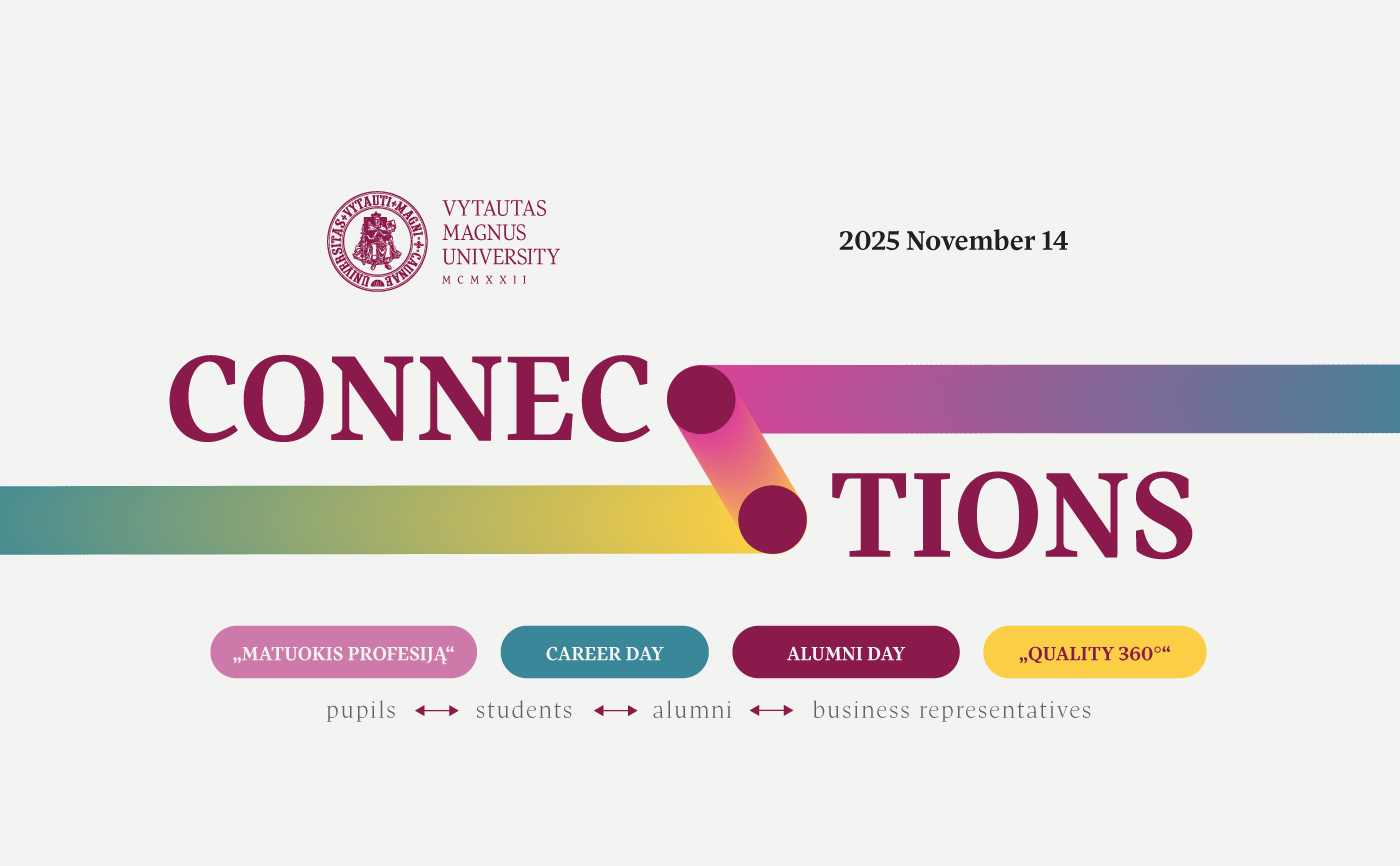 On November 14th, Vytautas Magnus University (VMU) will host a unique event, VMU Connections, bringing together high school students from across Lithuania, VMU students, lecturers, alumni, and the university’s partners – companies and organizations. The university will provide a space for everyone to meet, communicate, share knowledge, experiences, and professional opportunities.