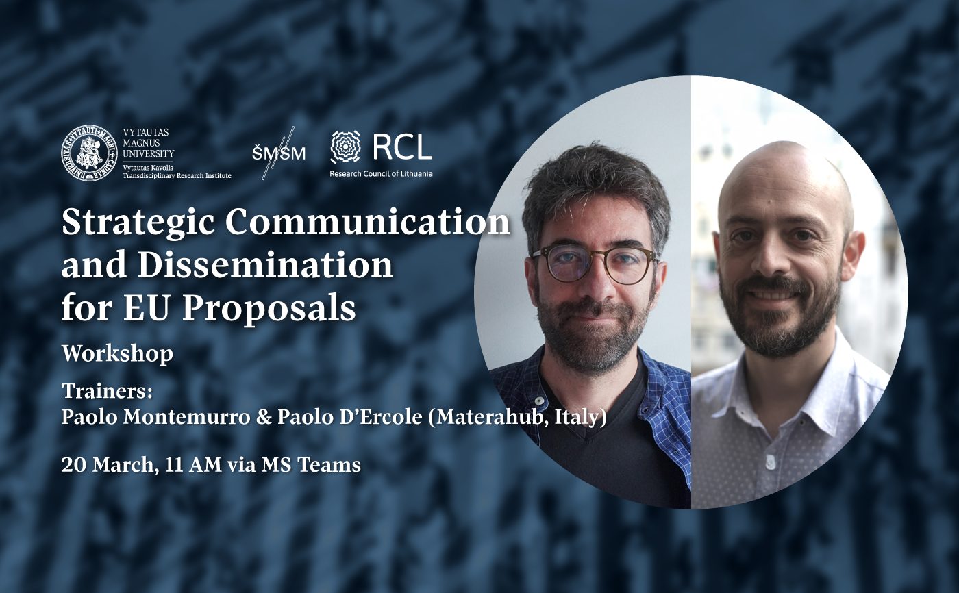 The Vytautas Magnus University Vytautas Kavolis Transdisciplinary Research Institute invites the academic community to a workshop on strategic communication and dissemination for EU proposals.