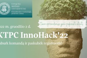 Gruodžio 2 d. VDU Komunikacijos ir technologijų perdavimo centras (VDU KTPC) kviečia į pirmąjį hakatoną „KTPC InnoHack'22". Visus norinčius išbandyti savo jėgas - studentus, dėstytojus, mokslininkus ir kitus asmenis, kurie turi polėkio kurti naujoves ir ieškoti netikėtų sprendimų, hakatonas pasitiks su klimato kaitos keliamais iššūkiais.