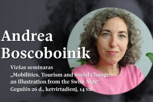 Gegužės 26 d., ketvirtadienį, 14 val. VDU Socialinės antropologijos centras kviečia į dr. Andrea Boscoboinik (Fribūro universitetas, Šveicarija) seminarą „Mobilities, Tourism and Social Change: an Illustration from the Swiss Alps“.