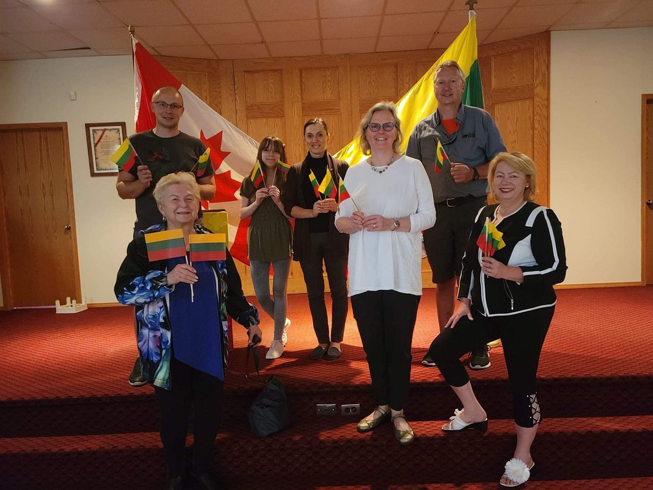 Edmontono lietuviai gieda Lietuvos himną 2022 m. liepa. I. Čuplinskas – trečia iš dešinės (I. Čuplinskas asmeninio archyvo nuotr.)