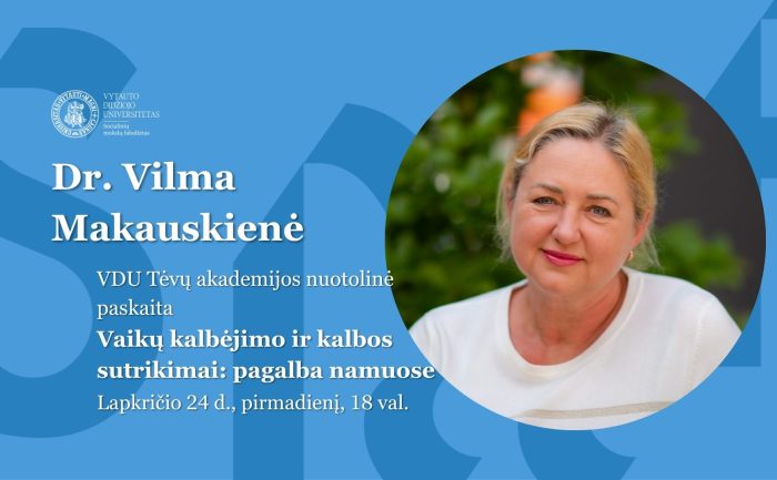 Lapkričio 24 d., pirmadienį, 18 val. kviečiame į VDU Tėvų akademijos nuotolinę paskaitą „Vaikų kalbėjimo ir kalbos sutrikimai: pagalba namuose“.