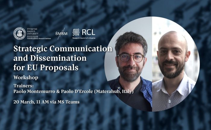 Vytauto Didžiojo universiteto Vytauto Kavolio transdisciplininių tyrimų institutas kviečia akademinę bendruomenę į seminarą apie strateginę komunikaciją ir sklaidą ES projektų paraiškose.