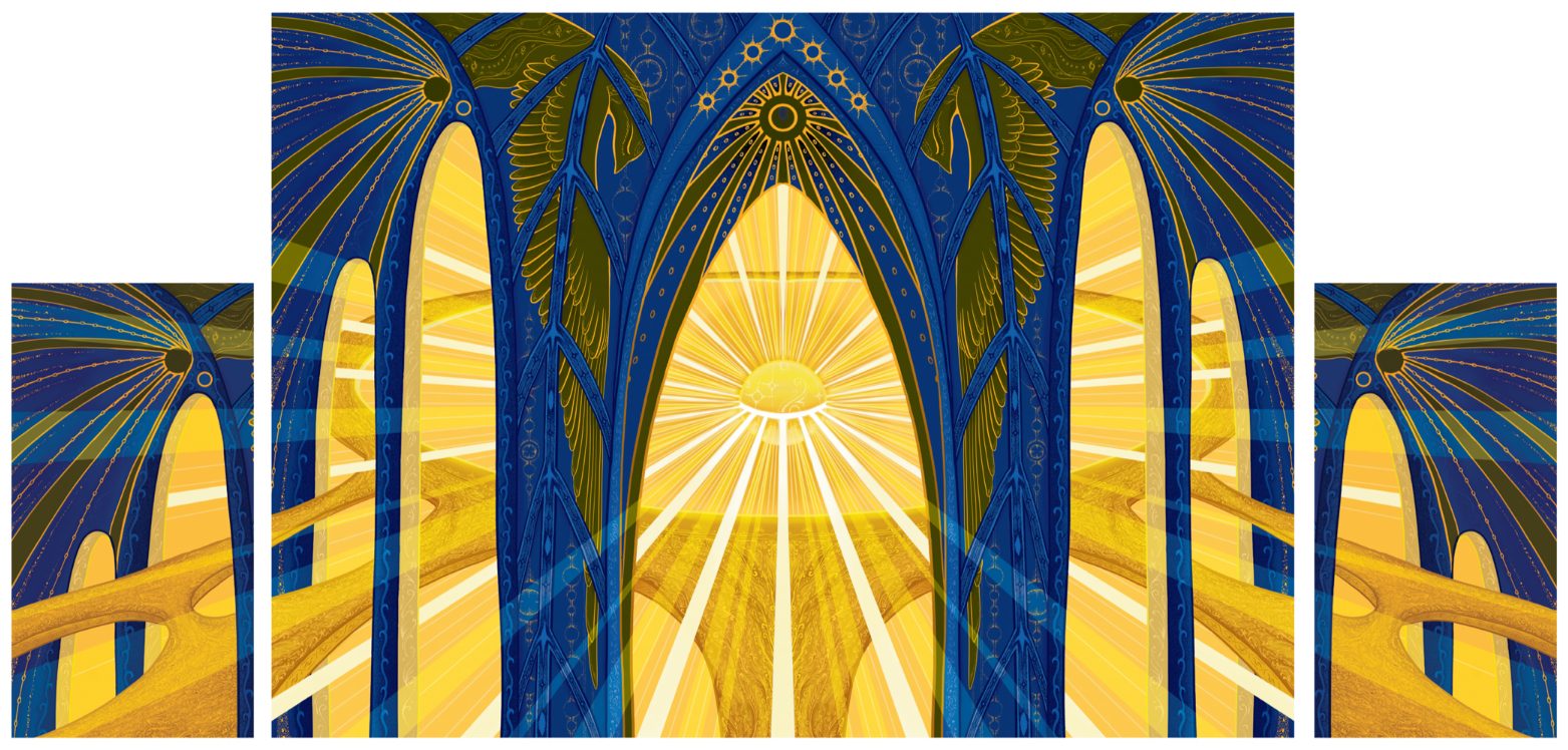 Parodos koncepcija ir išdėstymas remiasi Čiurlionio kūryba ir kviečia eiti nuo gelmių (požemio, tamsos, praeities) link kranto ir jūros (vandens, vėjo, bangavimo, horizonto, dabarties) į saulę (laisvę, šviesą, vertikalę, ateitį). Pagal šiuos motyvus dėliojamas naratyvas ir kuriamas maršrutas, akcentuojantis erdvę ir laiką, kurie yra oficialios Čiurlionio metų programos komunikacijos dalis.