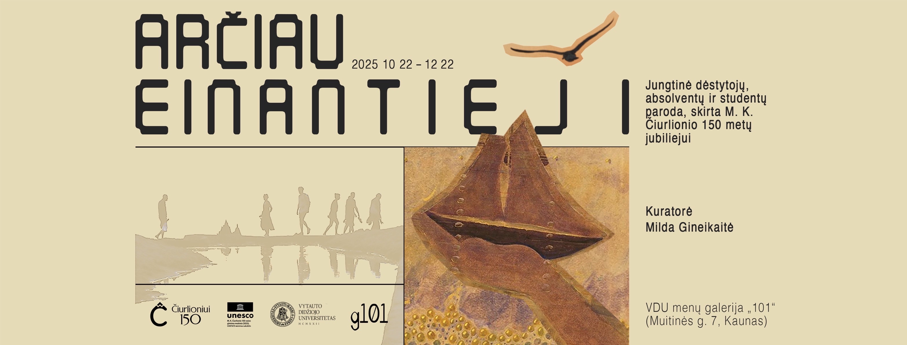 Spalio 22 d. 18:00 val. VDU menų galerijoje „101“ (Muitinės g. 7, Kaunas) vyks jungtinės Menų fakulteto dėstytojų, absolventų ir studentų parodos „Arčiau einantieji“ atidarymas.