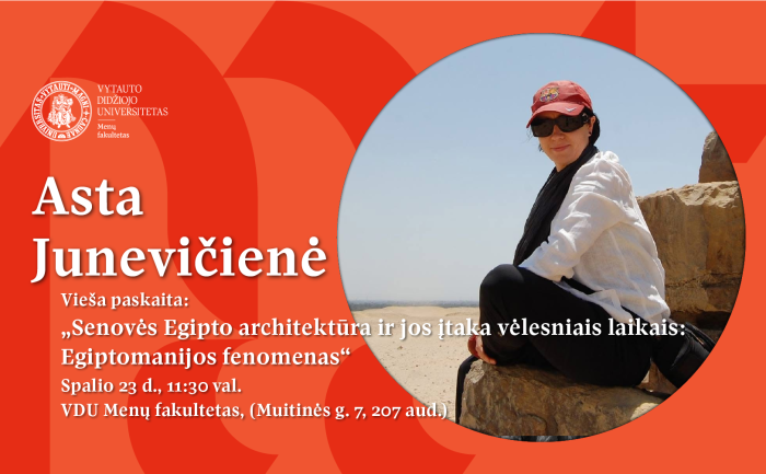 Spalio 23 d. 11:30 val. kviečiame į viešą Astos Junevičienės, Nacionalinio muziejaus LDK Valdovų rūmų projektų vadovės paskaitą „Senovės Egipto architektūra ir jos įtaka vėlesniais laikais: Egiptomanijos fenomenas“.
