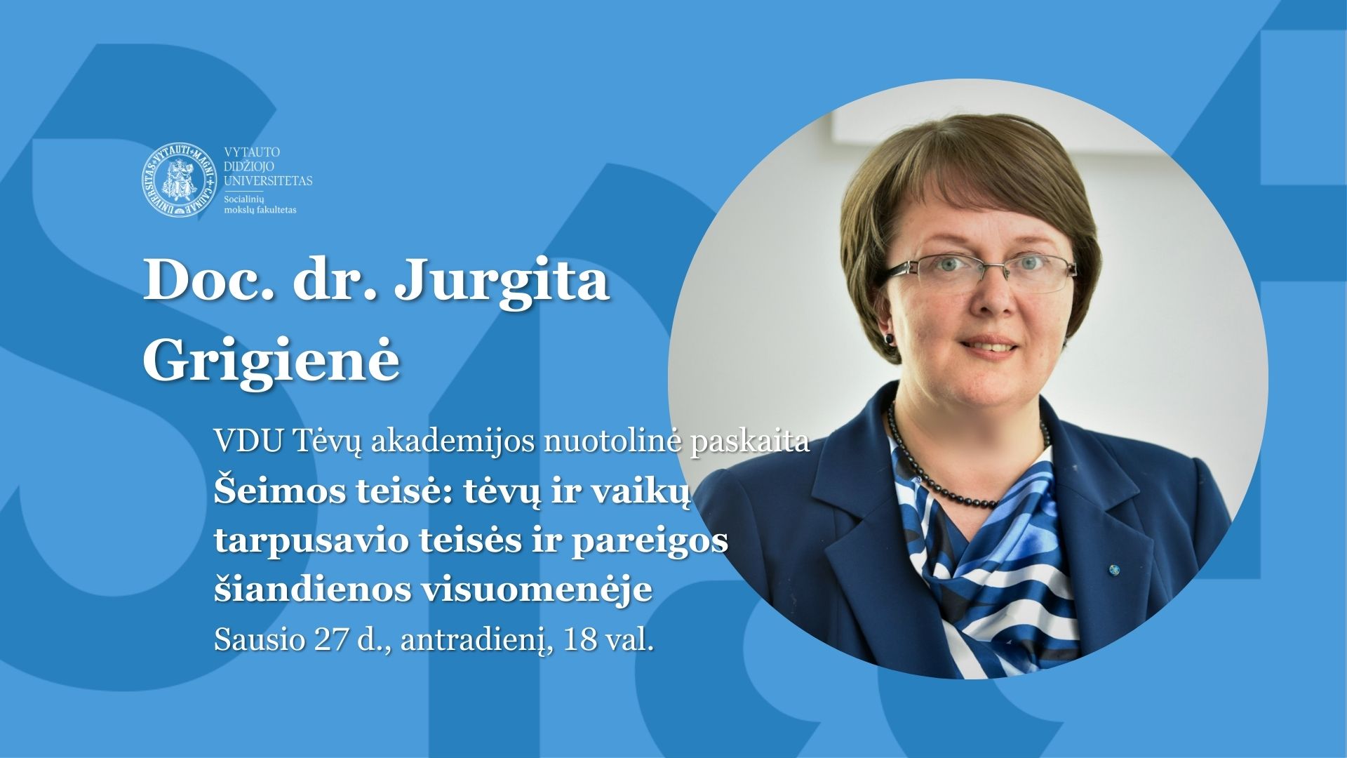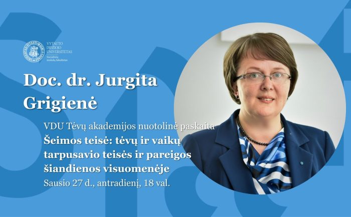 Sausio 27 d., antradienį, 18 val. kviečiame į VDU Tėvų akademijos nuotolinę paskaitą „Šeimos teisė: tėvų ir vaikų tarpusavio teisės ir pareigos šiandienos visuomenėje“.