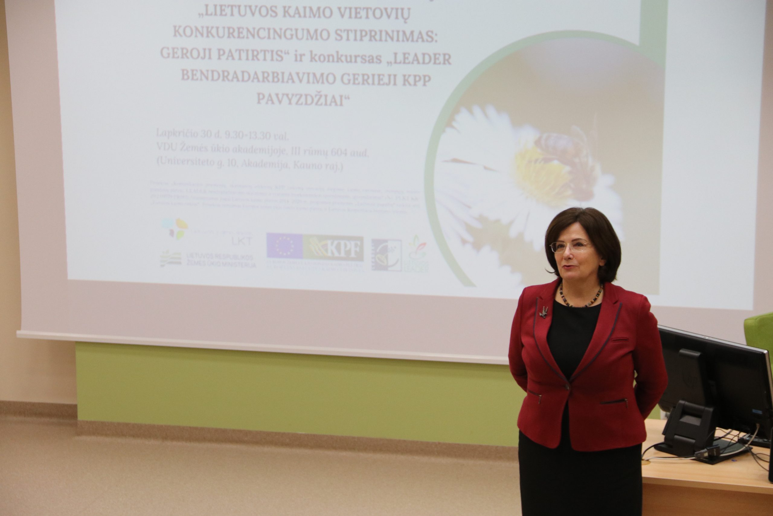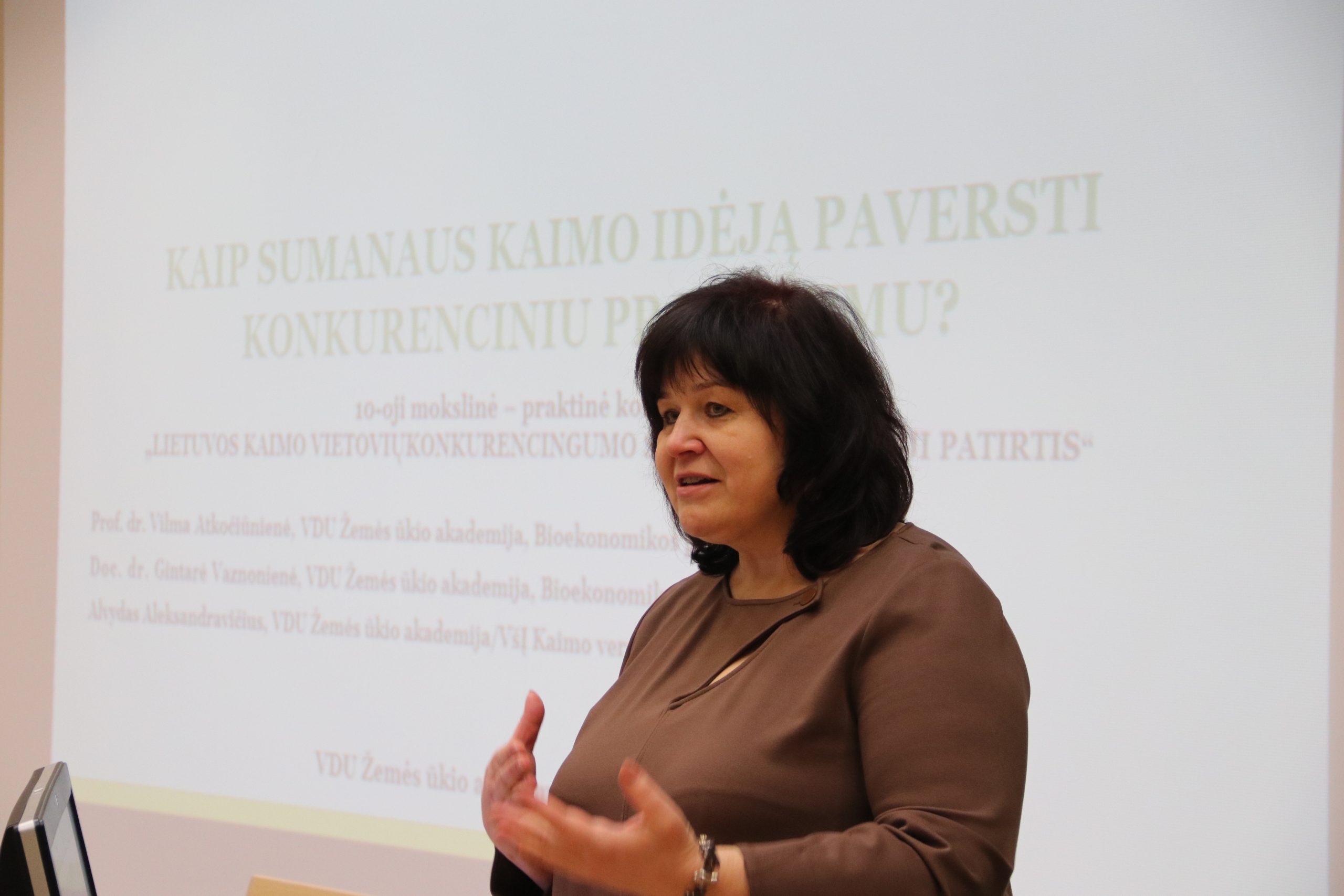 Mokslinės-praktinės konferencijos „Lietuvos kaimo vietovių konkurencingumo stiprinimas: geroji patirtis“ viena iniciatorių ir organizatorių, VDU Žemės ūkio akademijos Bioekonomikos plėtros fakulteto Verslo ir kaimo plėtros vadybos katedros profesorė, II pakopos studijų programos Kaimo plėtros administravimas komiteto pirmininkė prof. dr. Vilma Atkočiūnienė atkreipė dėmesį, kad organizuojant šį renginį itin svarbų darbą atliko šios programos magistrantai, studijas derinantys su darbu bei gyvenantys įvairiuose šalies regionuose. Jie savo rašto darbuose dažnai pirmieji atskleidžia kaimiškosiose vietovėse įgyvendinamų projektų geruosius pavyzdžius.