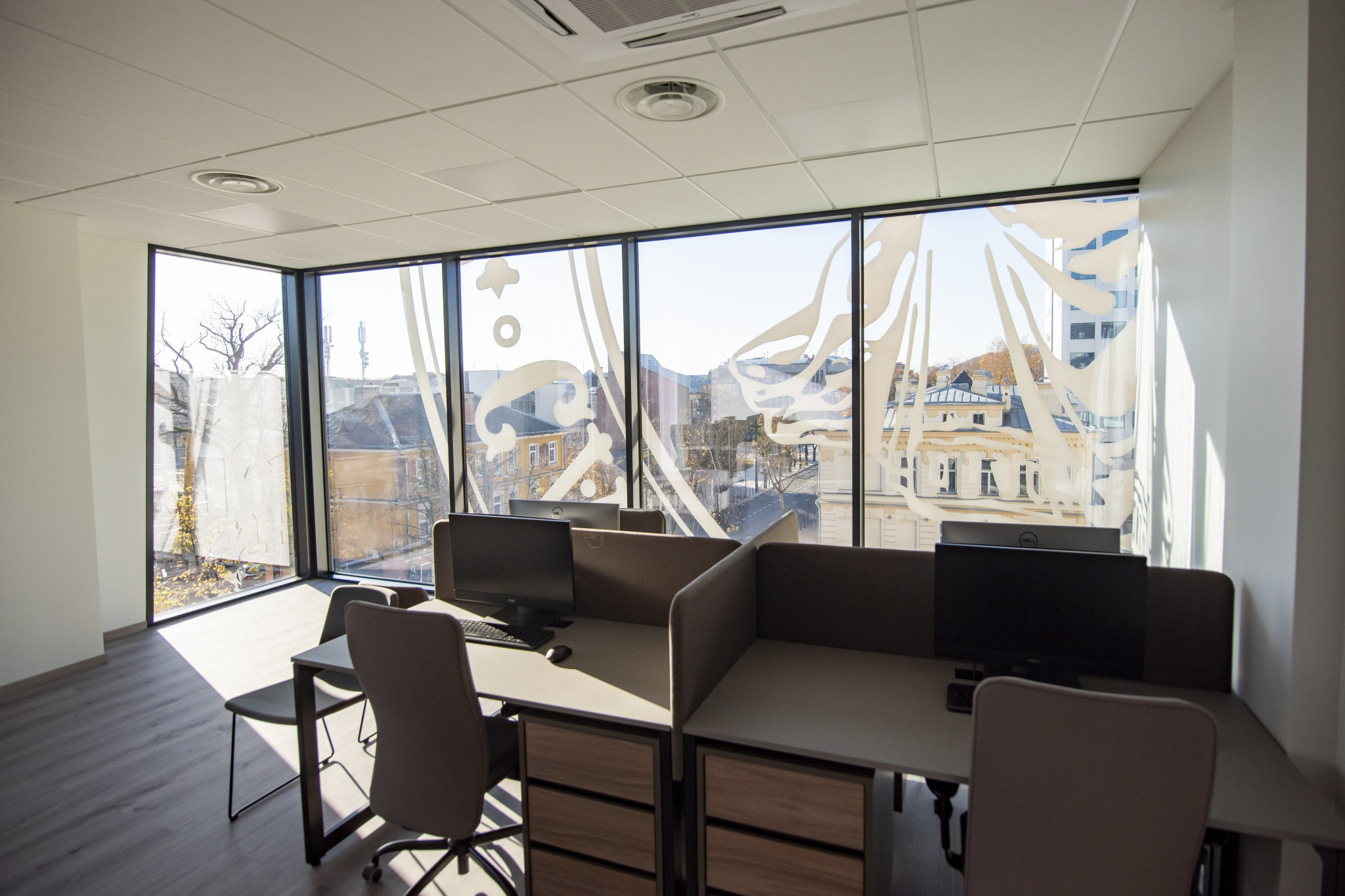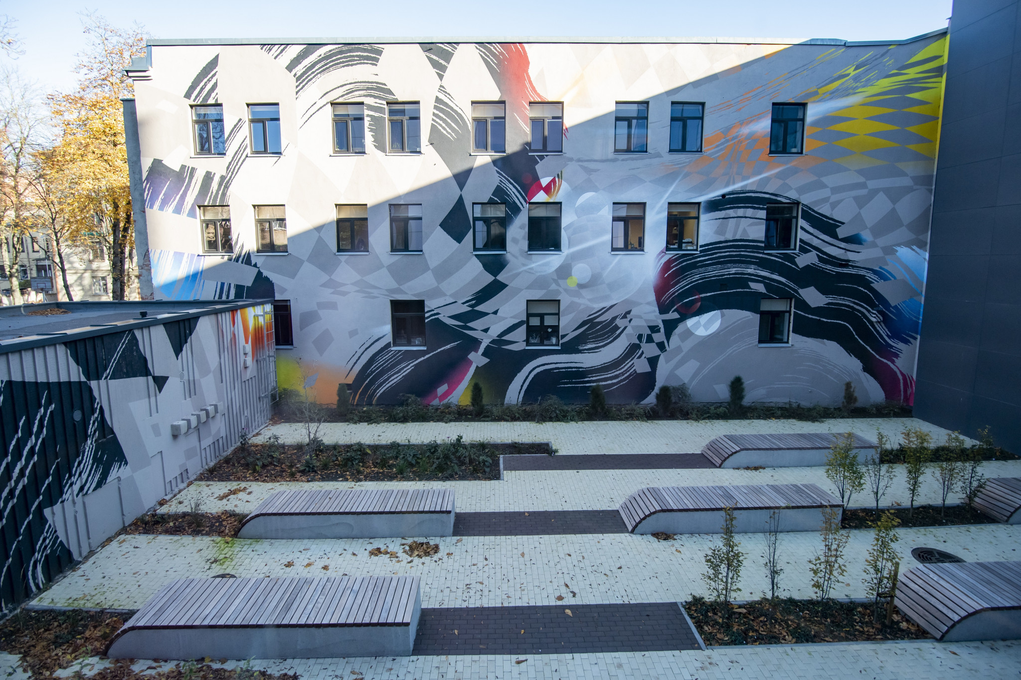 Rekonstruojant pastato erdves buvo atsižvelgta į patalpų funkciją pagal naujai numatomą mokslo paskirtį. Erdvės planuojamos taip, kad būtų patogios, šviesios, funkcionalios, pro langus atsivertų graži miesto panorama. Parinktos kokybiškos natūralios ir ilgai tarnausiančios apdailos medžiagos, tokios kaip stiklas, kvarcas, akmens masė. Vyraujančios spalvos – skirtingų atspalvių neutralios, žemiškos ir ramios, skatinančios susikaupimą, kartu ir lavinančios.