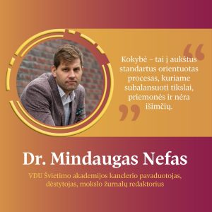 Diskusijos moderatorius – dr. Mindaugas Nefas, VDU Švietimo akademijos kanclerio pavaduotojas, dėstytojas, mokslo žurnalų redaktorius. Savo mintimis diskusijoje dalinsis: