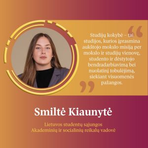 - Smiltė Kiaunytė – Lietuvos studentų sąjungos Akademinių ir socialinių reikalų vadovė.