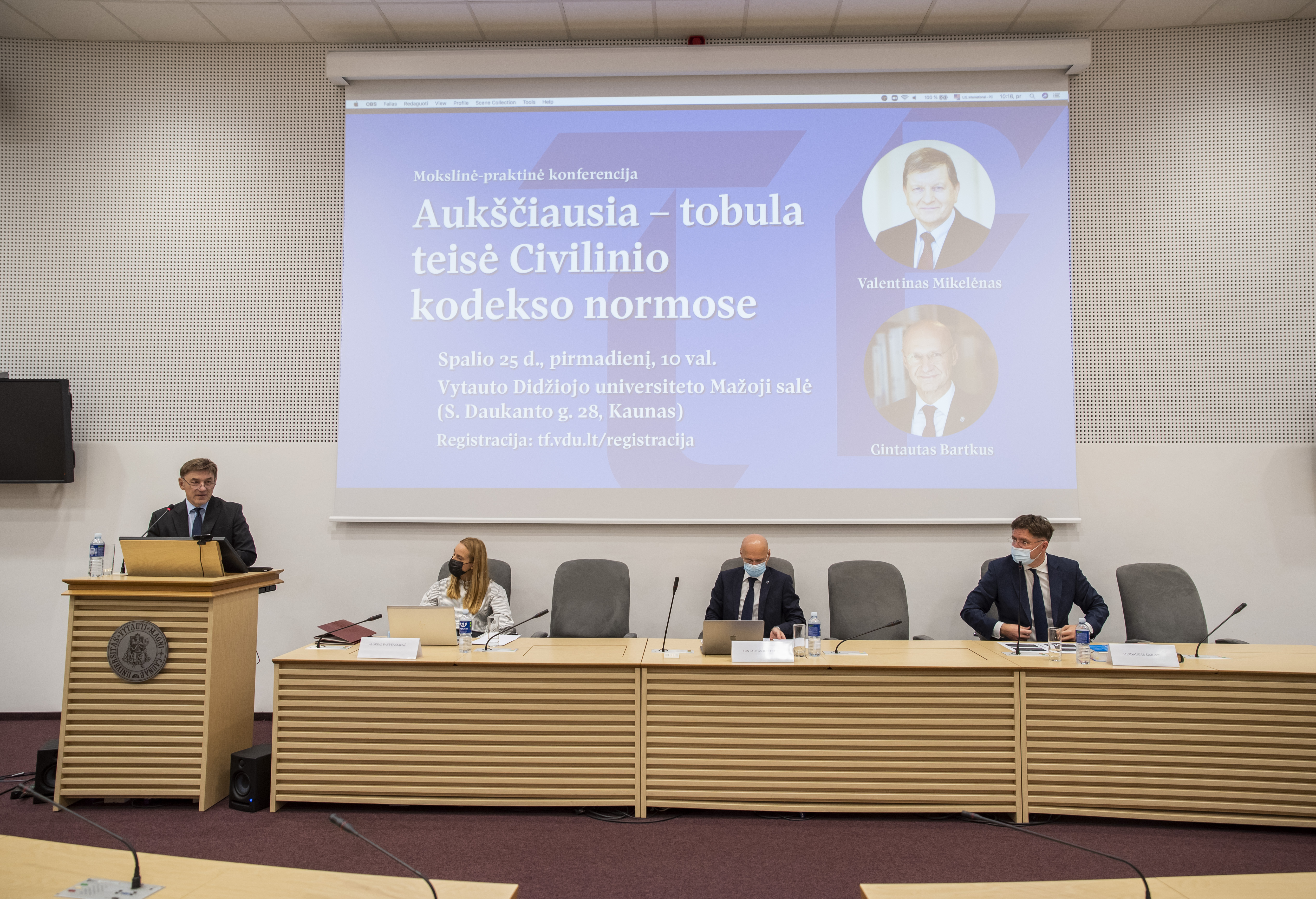 Konferencijos metu VDU rektorius prof. Juozas Augutis įteikė padėkas CK rengimo darbo grupės vadovui prof. Valentinui Mikelėnui, grupės nariams Gintautui Bartkui ir Algirdui Taminskui už Lietuvos Respublikos Civilinio kodekso parengimą bei Lietuvos civilinės teisės materialinį kodifikavimą ir vystymą.