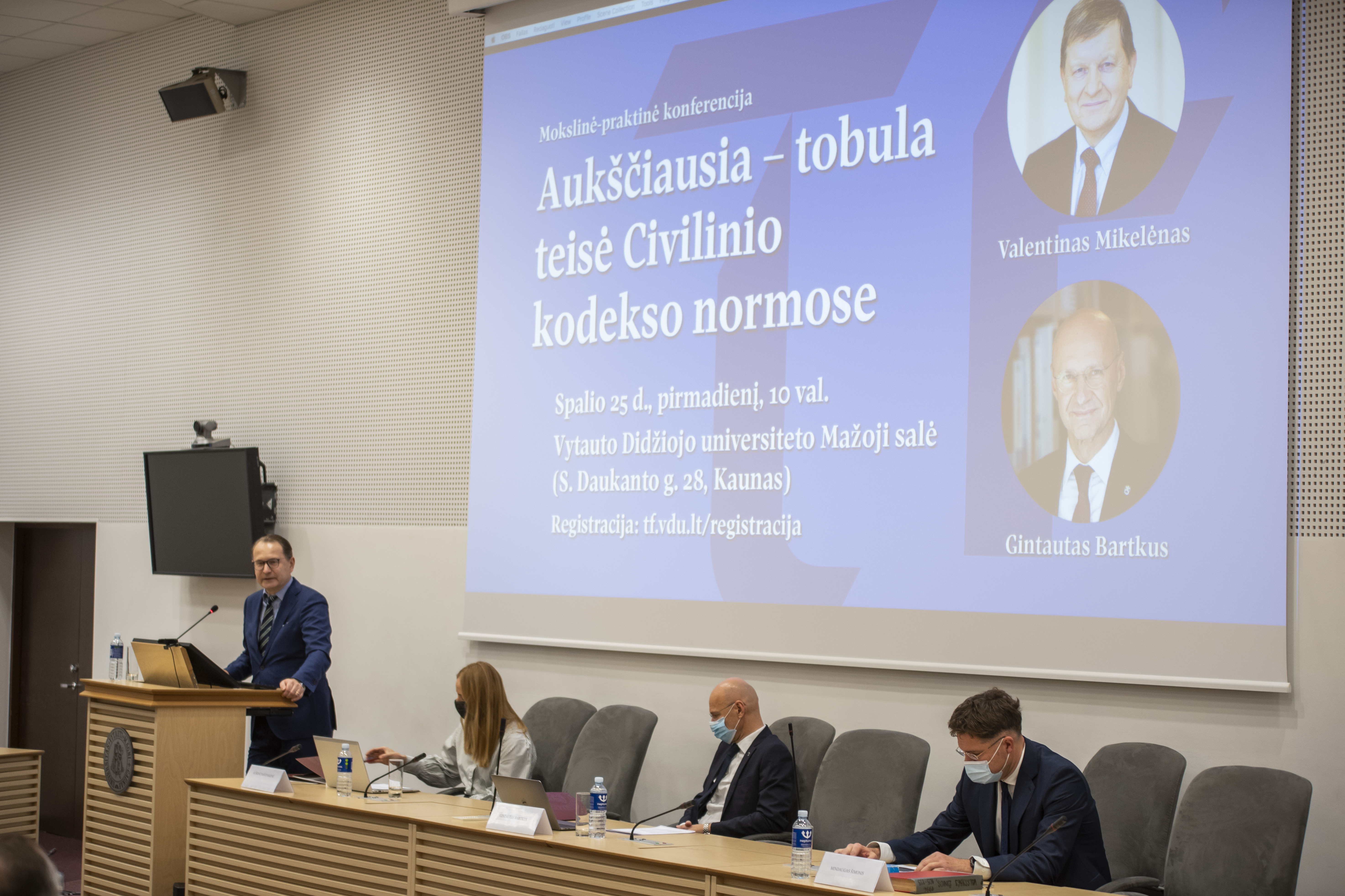 Spalio 25 d., Konstitucijos dieną, Vytauto Didžiojo universiteto (VDU) Teisės fakultetas šventiškai paminėjo XX-ąjį Civilinio kodekso jubiliejų. Praktinėje-mokslinėje konferencijoje „Aukščiausia – tobula teisė Civilinio kodekso normose“ pranešėjai ir konferencijos dalyviai prisilietė prie pirmojo Lietuvos Respublikos civilinio kodekso ištakų.
