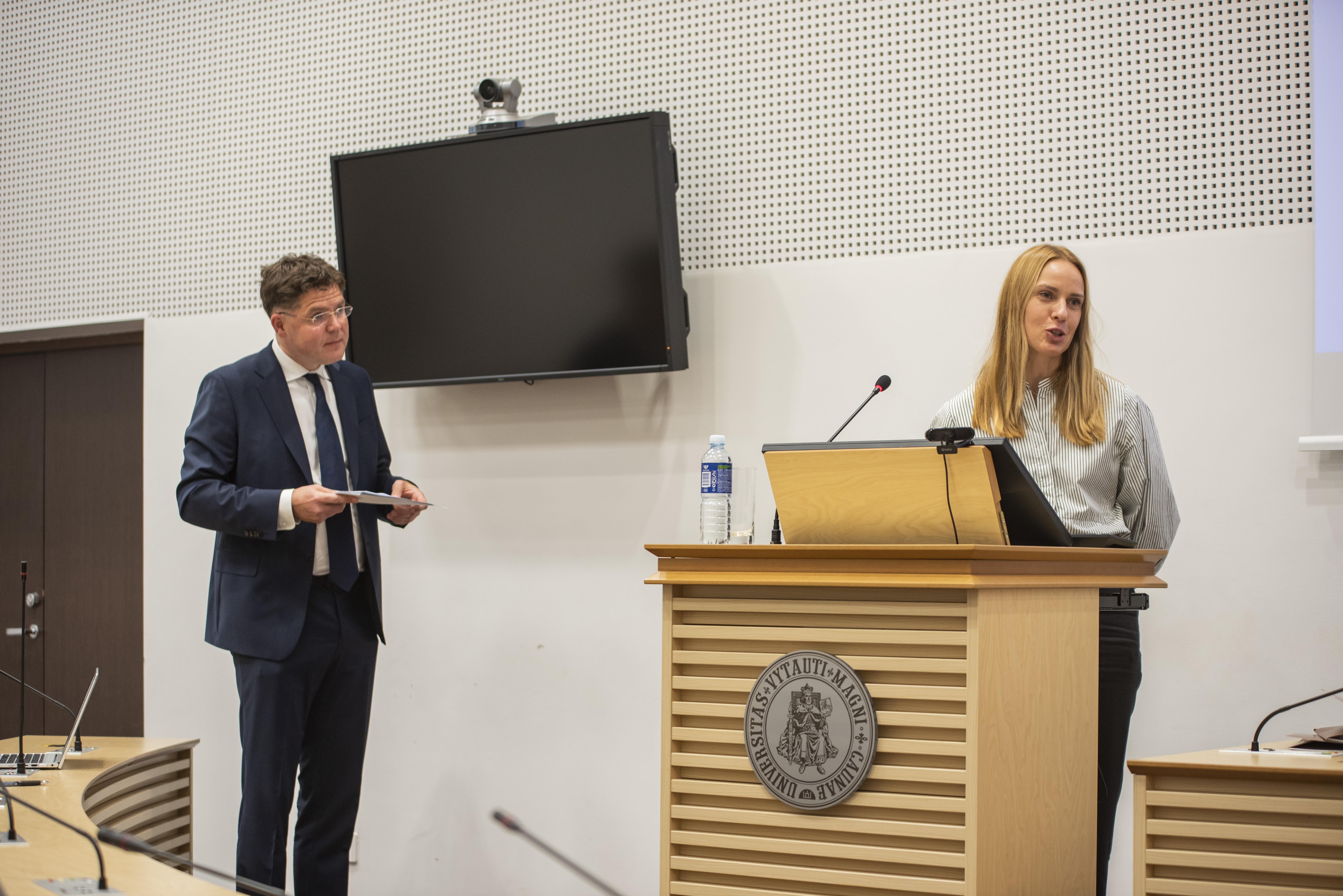 VDU lektorius Vygantas Malinauskas, pristatydamas pranešimą „Tobulos teisės link: civilinės teisės principai bendrojo gėrio perspektyvoje“, akcentavo teisės aiškumo, vienareikšmiškumo, prognozuojamumo ir vidinės priežasties jos laikytis sąlygas.