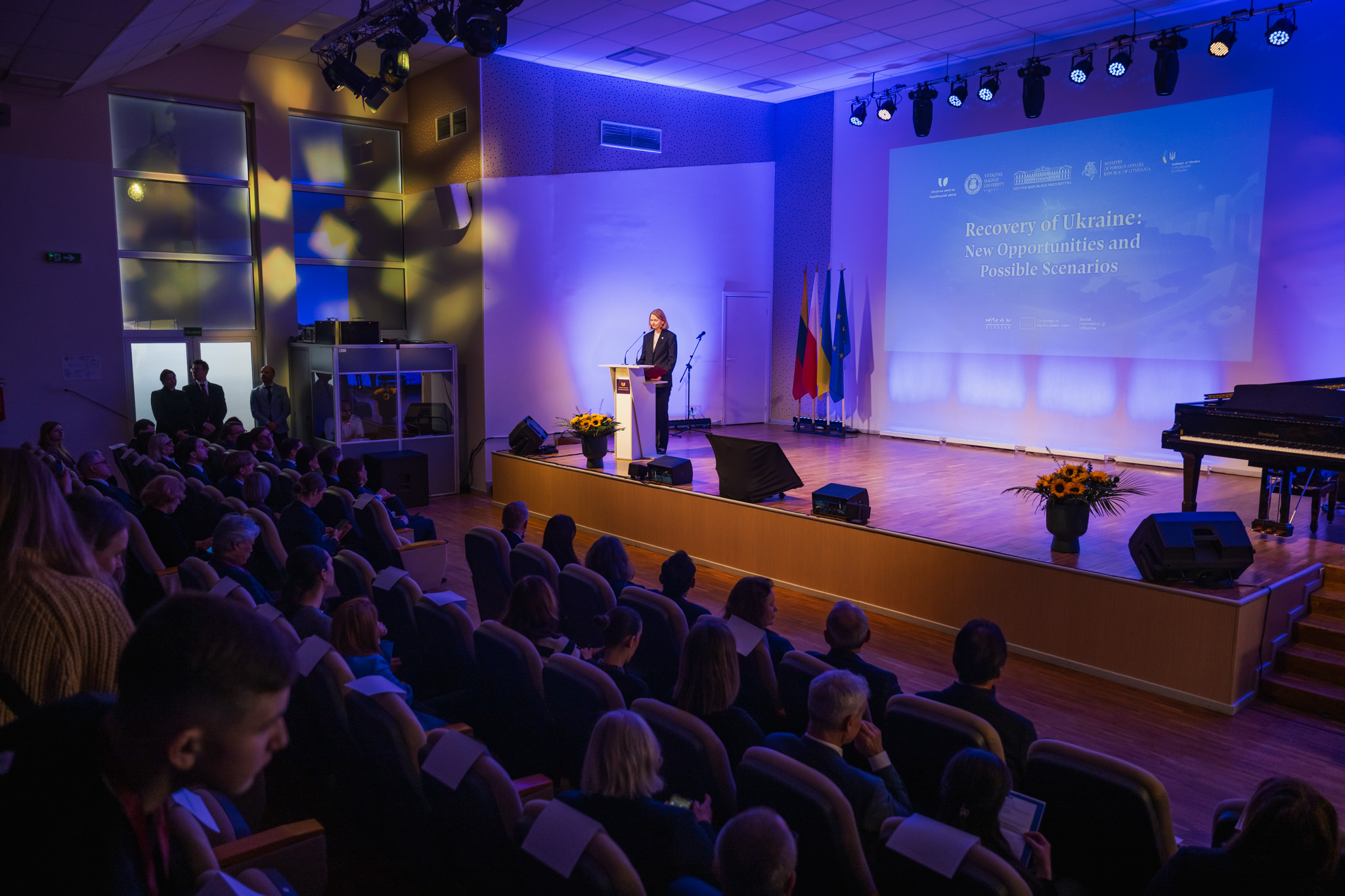 „Jau pirmosiomis invazijos dienomis priėmėme sudėtingą ir principingą sprendimą: gindamiesi nestabdysime vystymosi. Neleisime Rusijos smūgiams nustumti mūsų į tamsą. Todėl mes ne tik atstatome būstus, ligonines, mokyklas ir universitetus, atkuriame elektros tiekimą – stengiamės, kad visa tai būtų geriau nei buvo anksčiau. Esame nuoširdžiai dėkingi Lietuvai už tai, kad palaiko šį į žmogų orientuotą požiūrį“, – sakė Ukrainos pirmoji ponia Olena Zelenska, atidarydama tarptautinį forumą „Ukrainos atsigavimas: naujos galimybės ir vystymosi scenarijai“, kuris vyko šiandien Vytauto Didžiojo universiteto (VDU) Ukrainos centre Vilniuje minint ketvirtąsias pilno masto karo Ukrainoje metines.