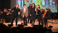 Absolventų dienos vakarinėje programoje – visai universiteto bendruomenei skirtame šventiname VDU Kamerinio orkestro ir VDU Muzikos akademijos dėstytojo, atlikėjo Manto Jankavičiaus bei jo kuruojamos klasės solistų koncerte skambėjo populiariausios dainos nuo VDU atkūrimo pradžios iki šiandienos.