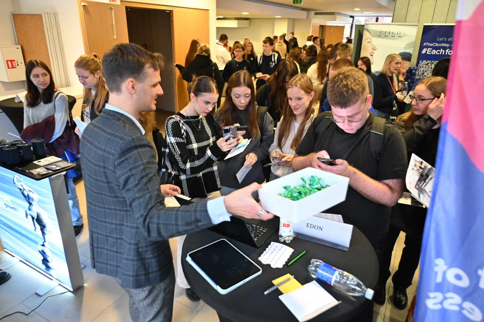 Moksleiviai – tik viena renginį „VDU Jungtys“ jungianti grandis. Studentai turėjo galimybę Karjeros mugėje susipažinti su beveik 30 įmonių ir organizacijų, sužinoti apie naujausias darbo rinkos tendencijas, užmegzti svarbius ryšius ir net dalyvauti gyvuose darbo pokalbiuose.