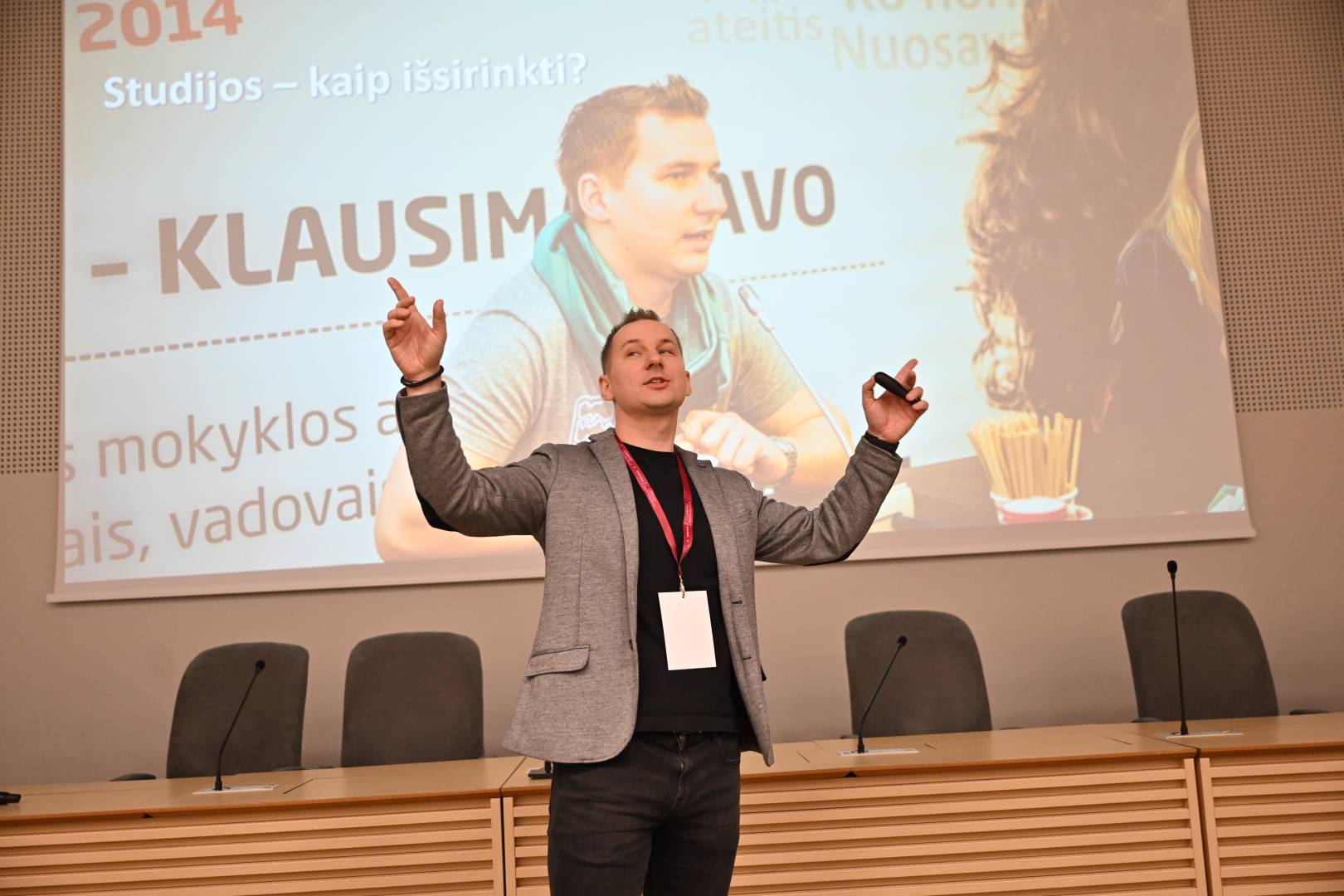 „Kai rinkausi, ką studijuoti, mano tėvams būdavo visiškas šokas. Mes labai dažnai pykdavomės dėl to, nes aš sakydavau, kad noriu studijuoti tai, kas man patinka, o tėvai sakydavo, kad reikia studijuoti tai, kur uždirbtum pinigų ir nesėdėtum tėvams ant sprando. Taigi auksinė taisyklė, kurią turite prisiminti yra: tai, kas patinka, plius tai, kas sekasi, plius tai, kas leidžia pragyventi, lygu – laimingas žmogus“, – mokė VDU absolventas.