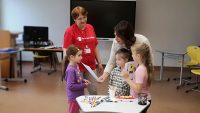 D. Nausėdienė apsilankė vaikams organizuojamose emocinių užsiėmimų ir terapinių žaidimų grupėse su psichologais, moterų dailės terapijos užsiėmime, taip pat anglų kalbos klasėje.