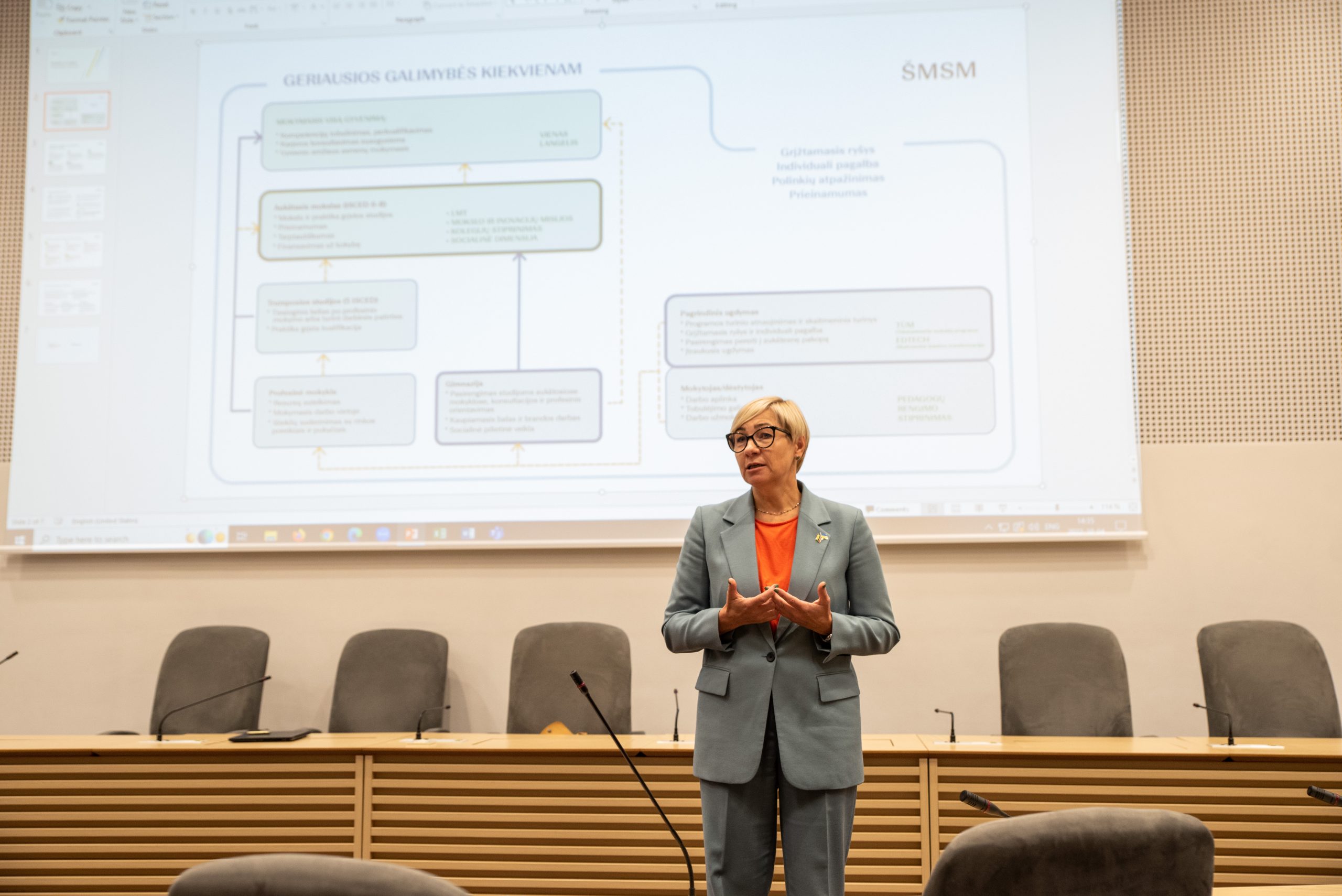 Susitikimo metu ministrė kalbėjo apie švietimo perspektyvas pradedant bendruoju ugdymu ir baigiant aukštuoju mokslu bei mokymosi visą gyvenimą užtikrinimu. Buvo pristatytos naujai patvirtintos bendrojo ugdymo programos ir bendrojo ugdymo tikslai, taip pat iškelti aukštojo mokslo studijų kokybės klausimai.