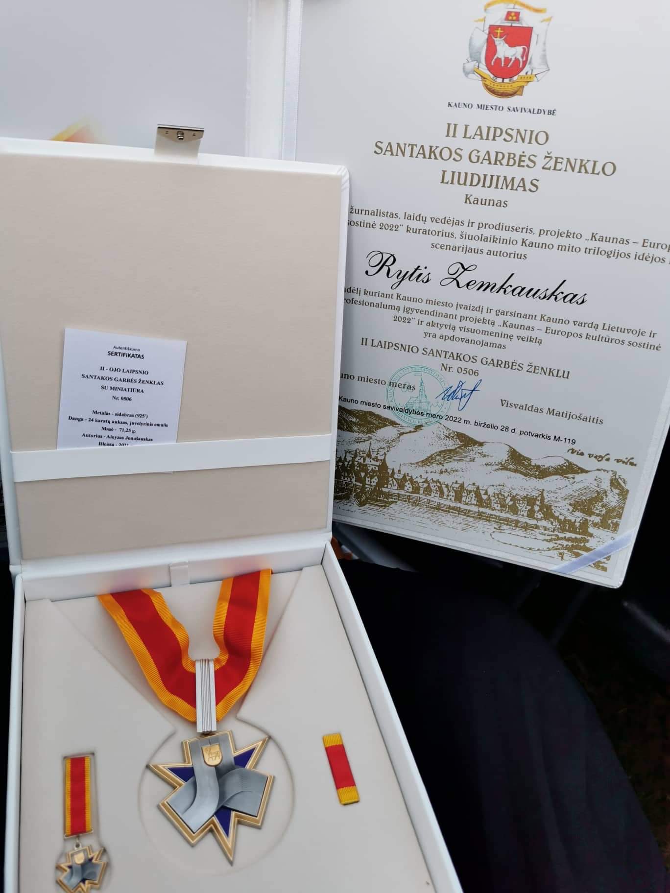 Liepos 6 d. iškilmingoje apdovanojimų ceremonijoje Vytauto Didžiojo universiteto (VDU) Viešosios komunikacijos katedros dėstytoją Rytį Zemkauską Kauno miesto meras Visvaldas Matijošaitis apdovanojo 2-ojo laipsnio Santakos garbės ženklu. Šis apdovanojimas įteiktas už ypatingus nuopelnus miestui, puoselėjant „Kaunas – Europos kultūros sostinė 2022” veiklas.