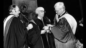 Rektoriaus regalijų įteikimas B. Vaškeliui 1993 m.
