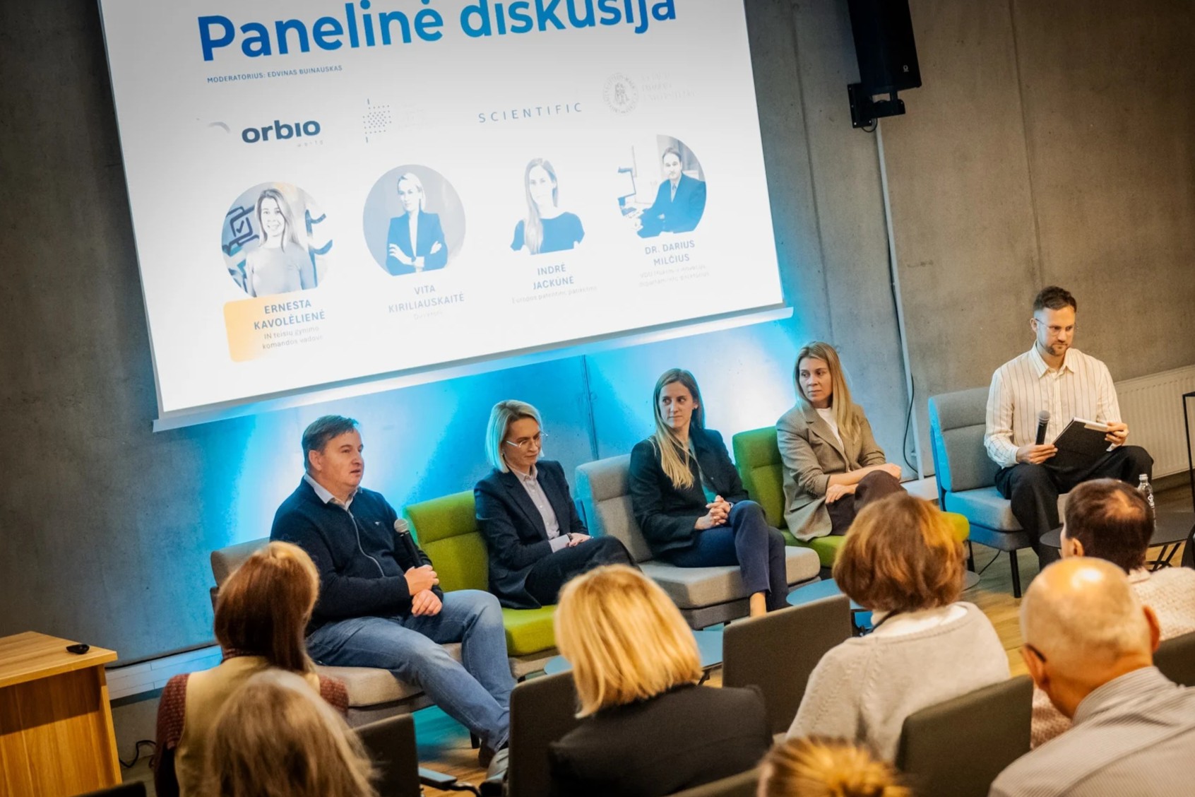 Kavolėlienė kartu su I. Jackūne, V. Kiriliauskaitė ir VDU Mokslo ir inovacijų departamento direktoriumi dr. Dariumi Milčiumi panelinėje diskusijoje diskutavo apie tai, kaip pasitelkus intelektinę nuosavybę atrasti konkurencinį pranašumą.