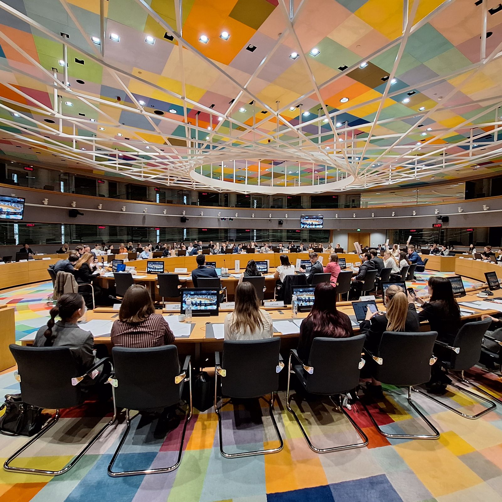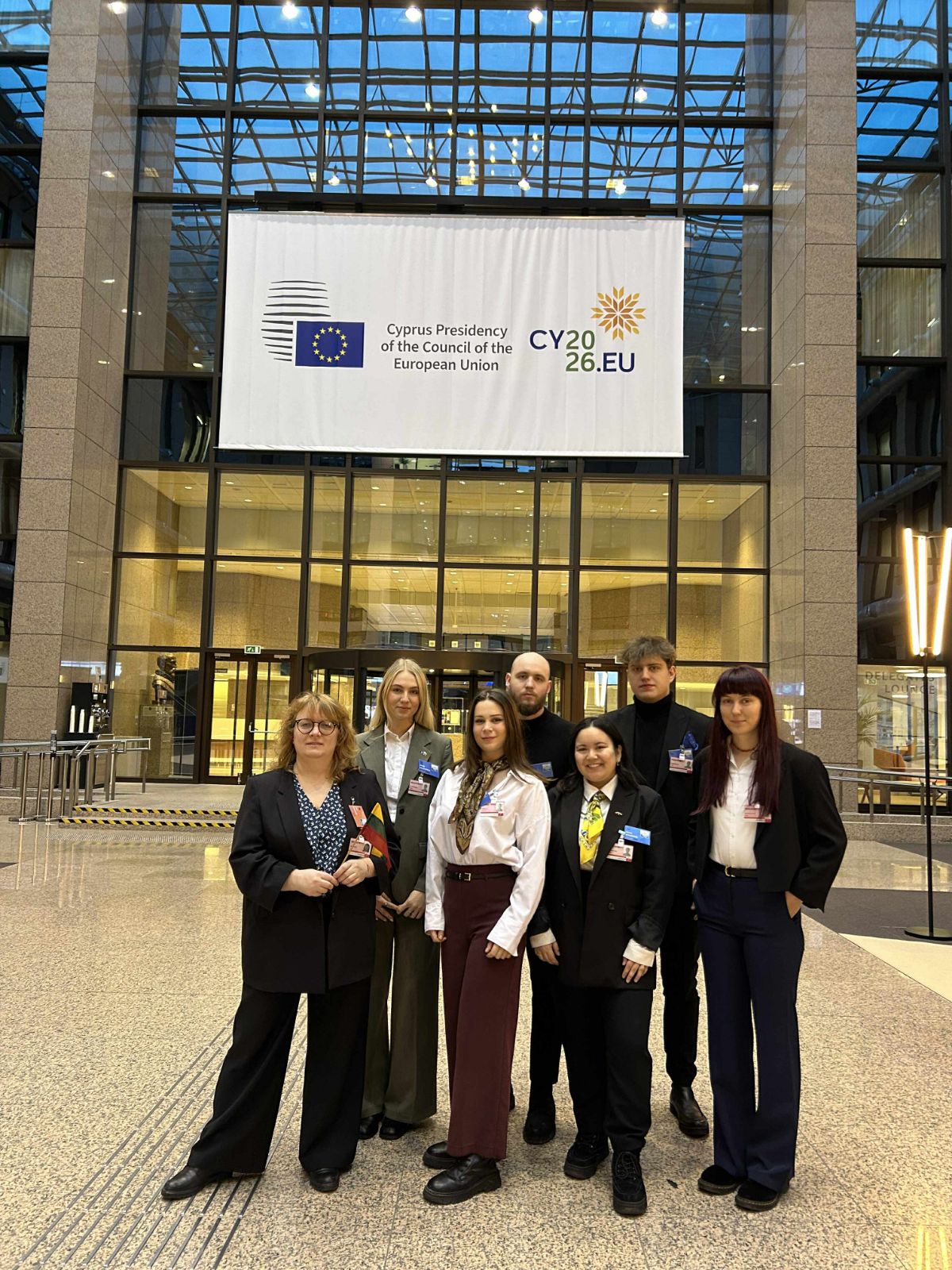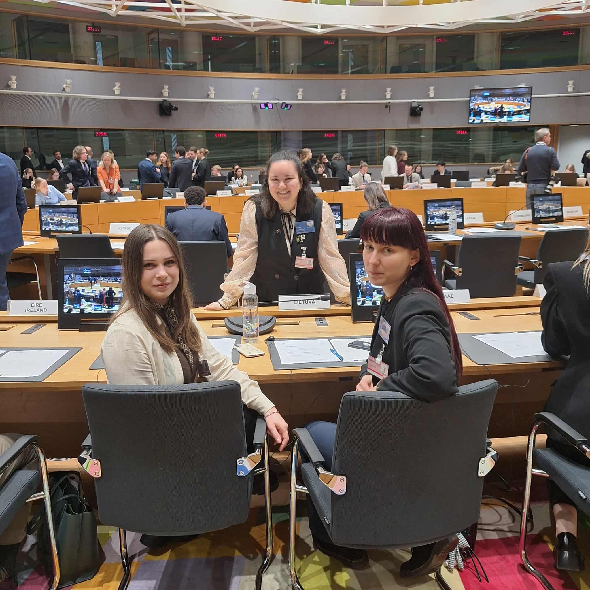 VDU PMDF prodekanės Aistės Žemaitytės iniciatyvos dėka studentų vizitas Briuselyje neapsiribojo vien simuliacija. Lietuvos delegacija turėjo išskirtinę galimybę susitikti su Lietuvos nuolatinės atstovybės Europos Sąjungoje ambasadoriumi Robertu Bružilu bei Atstovybės darbuotojais. Susitikimo metu studentai iš arti susipažino su Lietuvos atstovavimo ES kasdiene veikla, instituciniu pasirengimu ir prioritetais, ypač aktualiais Lietuvai ruošiantis pirmininkavimui Europos Sąjungos Tarybai. Tai tapo itin vertinga praktine patirtimi, leidusia studentams geriau suprasti ne teorinius, o realius politinius ir diplomatinius procesus.